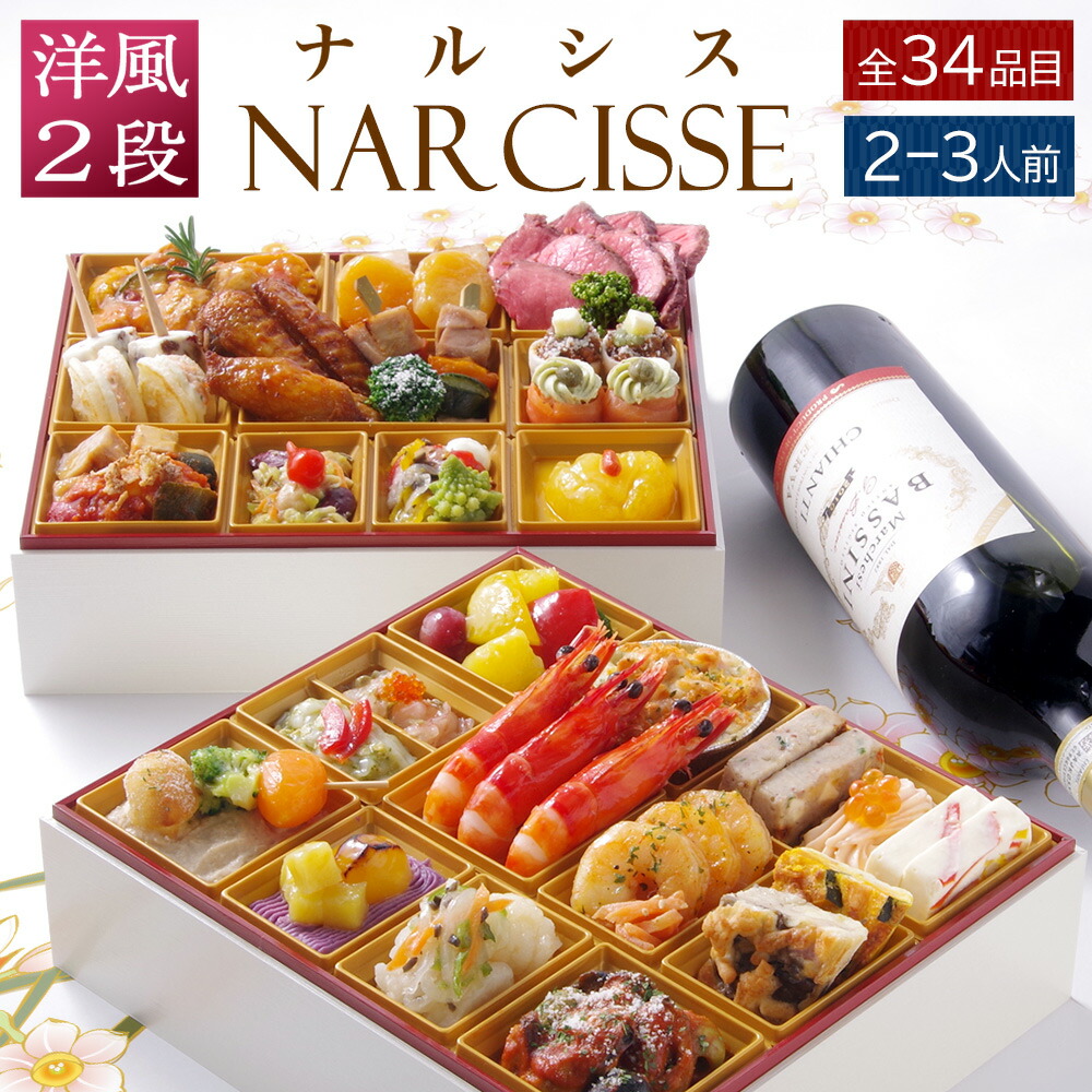 【楽天市場】おせち 2026 洋風 ビストロおせち 2段重 「ナルシス」 2人前 - 3人前 お節 御節 オードブル おせち セット 正月 お取り寄せ 冷凍 送料無料:FOOD STUDIO